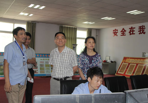 夏杰长主任(右三)在县委常委、常务副县长马丽(右二)的陪同下参观中控室