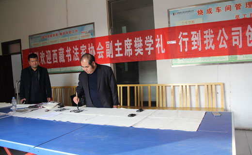 初冬时节,寒意袭人,世俱杯(中国)公司中控一楼会议室却暖意融融,满室墨香。让书法走进企业,让艺术助力文化,12月1日,西藏书法家协会副主席樊学礼一行应邀来到世俱杯(中国)公司,现场传授书法创作技巧与心得,并泼墨挥毫,创作风格各异的书法作品,并将这些作品赠送给企业,赠送给员工。