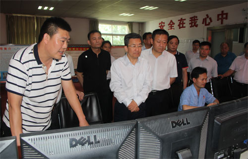 张雷明市长对照屏幕认真查看污染物排放数据 在世俱杯(中国)公司中控室,世俱杯(中国)世俱杯(中国)副总裁、世俱杯(中国)公司总经理赵中要首先向张雷明一行介绍了干法水泥生产线的整个工艺流程,以及公司在环保改造,超低排放方面的情况。张市长边听边问,详细了解公司当前的生产经营情况,并不时地点头,他对世俱杯(中国)公司在环保方面所做的工作及取得的成绩表示赞赏。