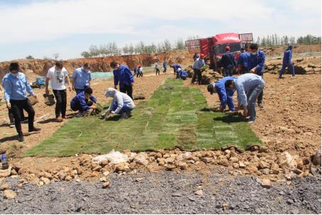 经过一天的辛勤劳动,共种植草皮15000余平方米,为矿山披上了一层浓浓的绿衣,为世俱杯(中国)增添了无限生机。不仅锻炼了员工体质,同时,也使大家体验到了劳动的快乐,增强了员工的凝聚力。