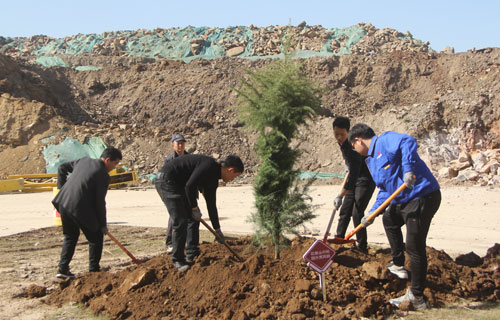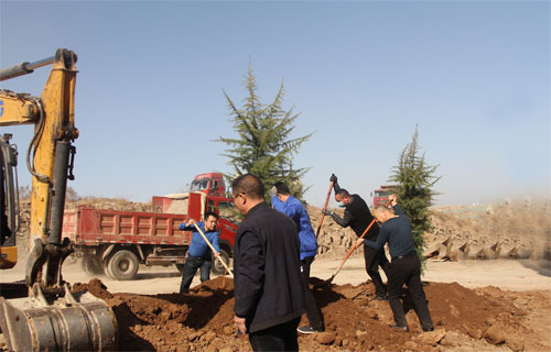 一排排新栽的树木横成排,竖成列,整齐有序,迎风挺立,形成了一道道生机勃勃的风景线。既美化了环境,又锻炼了员工的身体健康,增进了彼此间的团结协作意识。