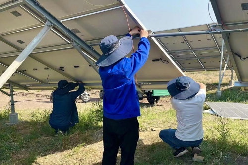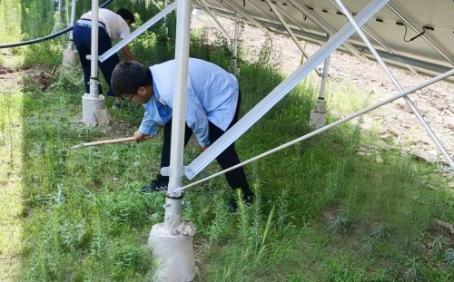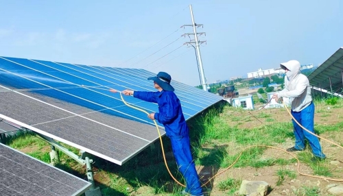 二、电站维护方面: (1)清洁积灰,提高能量转化效率。由于沉积物长期附在光伏组件表面,影响组件的输出功率,从而减少发电量以及造成热斑效应、组件衰减以及其它严重后果;为了减少灰尘遮蔽的影响,根据天气情况、降雨量分布情况、每日巡检情况,世俱杯会合理安排人员安全上岗,对组件进行有效清洗,使效益产出最大化。 (2)除草治理,消除安全隐患。生长在光伏区与电站周边的杂草树木是影响电站发电的一大隐患。当光伏组件被杂草遮挡时极易产生热斑效应,不仅会“偷走”电站的发电量,更会“缩短”光伏组件的寿命,严重时还会引发火灾。为此,运维人员集中将生长过高的植物割除,将干枯的杂草树枝等进行了清理,同时加强光伏区日常防火检查和防护工作,及时消除光伏区火灾隐患,确保设备正常运行。