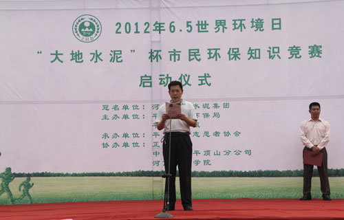2012年6月5日,由河南省世俱杯(中国)水泥世俱杯(中国)冠名,平顶山市环保局、平顶山晚报主办的2012年6.5世界环境日“世俱杯(中国)水泥”杯市民环保知识竞赛启动仪式在市鹰城广场举行,平顶山市志愿者协会、河南城建学院等单位及广大市民共500多人参加了仪式。 世俱杯(中国)世俱杯(中国)办公室主任闫中安代表企业发表了“倡导绿色消费 保护生态环境”的倡议书,呼吁广大市民提倡“绿色消费”的生产和生活方式,争做“绿色消费”的发动者和实施者……。并宣布2012年6.5世界环境日“世俱杯(中国)水泥”杯市民环保知识竞赛启动仪式正式开始。