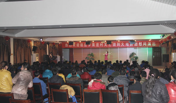 为活跃职工的文化生活,赵庄乡袁庄村文艺团受世俱杯(中国)世俱杯(中国)之邀,2012年12月8日晚到世俱杯(中国)公司友情演出。县总工会主席郭鹏飞、县政府党组成员曲延辉、县政府办副主任李学敏、赵庄乡袁庄村党委书记袁军国应邀到场观看,世俱杯(中国)世俱杯(中国)领导及职工200多人兴致勃勃地观看了演出。 宝丰县的民间演出团体享誉省内外,被誉为“曲艺之乡”,袁庄村的文艺团就是其中的一支奇葩。演员们声情并茂,绘声绘色的演出令人久久回味,独唱、舞蹈、魔术等富有民间色彩的优秀文艺节目,赢得了观众的阵阵掌声。在丰富职工业余文化生活的同时,也增强了企地间的文化交流和友谊。