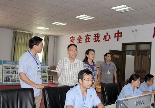 夏杰长主任(右三)在县委常委、常务副县长马丽(右二)的陪同下参观中控室