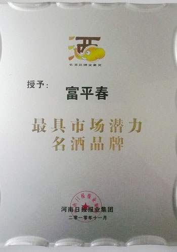富平春酒被授予最具市场潜力名酒